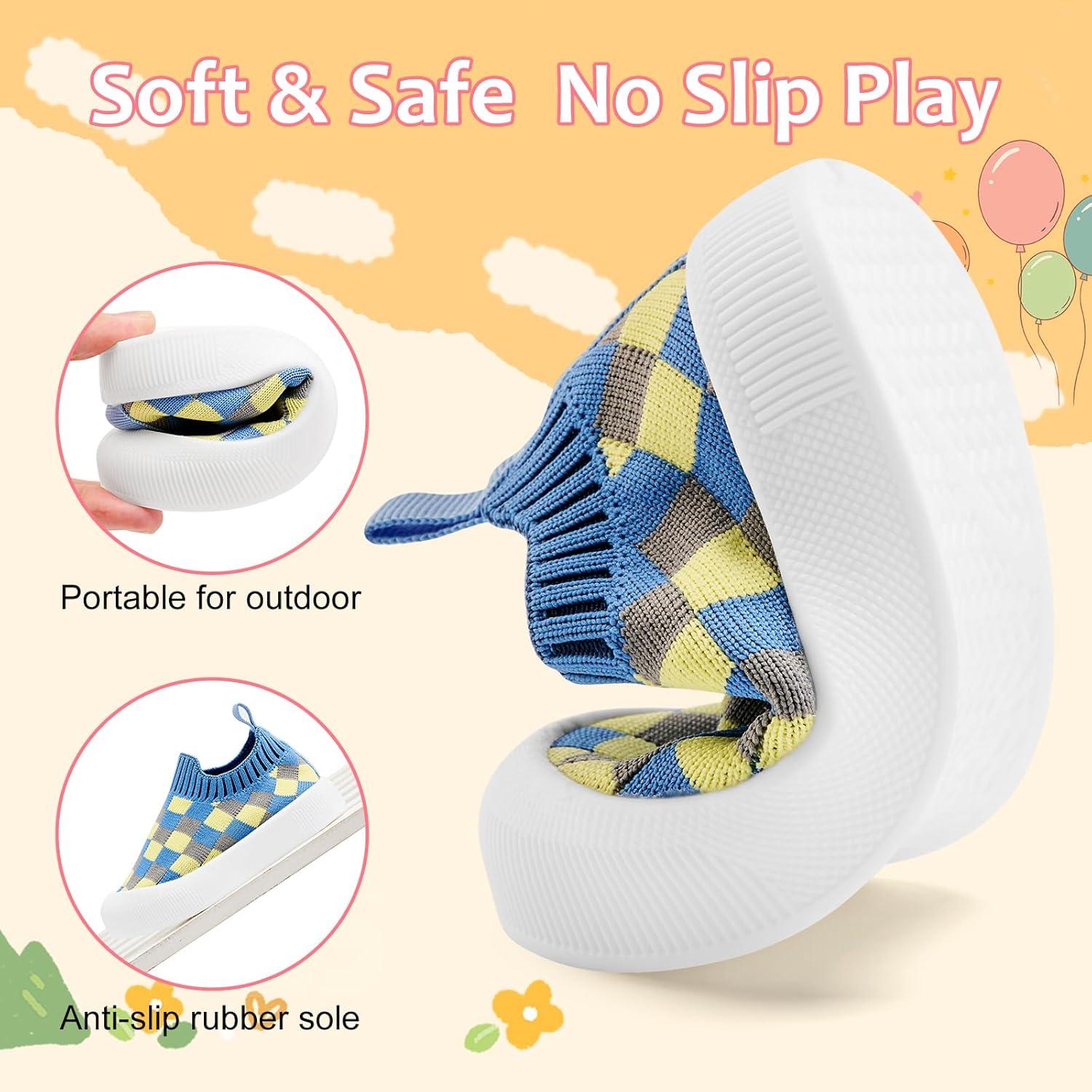 VIFUUR Baby Shoes Girls Boys Toddler Sneakers Non-Slip First Walkers Shoes for Babies 6 9 12 18 24 Months(L Yellowblue Board)