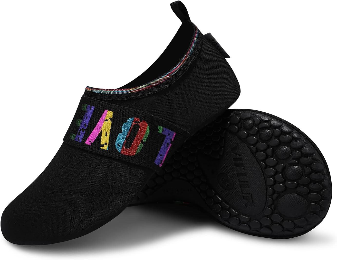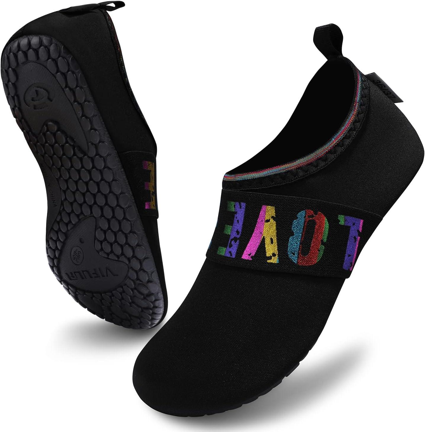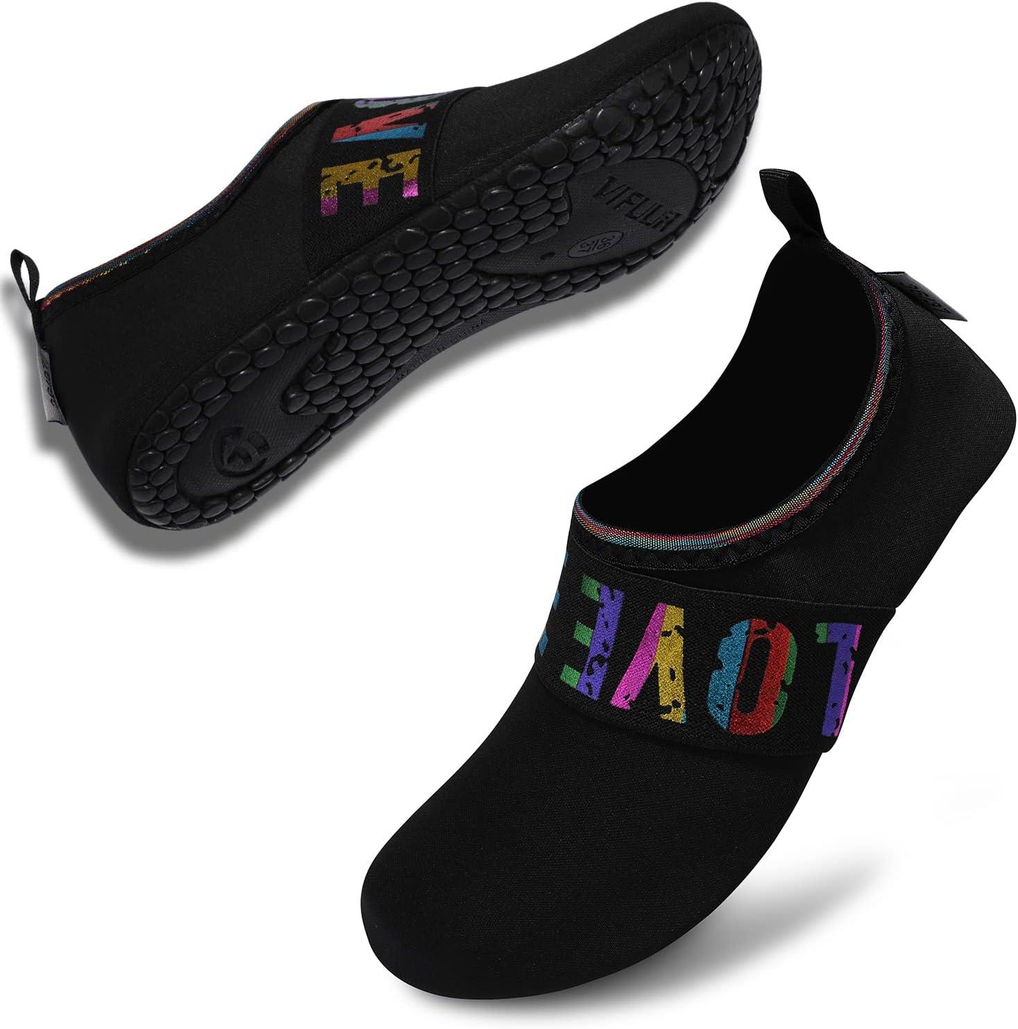 VIFUUR Water Sports Shoes Barefoot Quick-Dry Aqua Yoga Socks Slip-on for Men Women(Black/Loveblack)