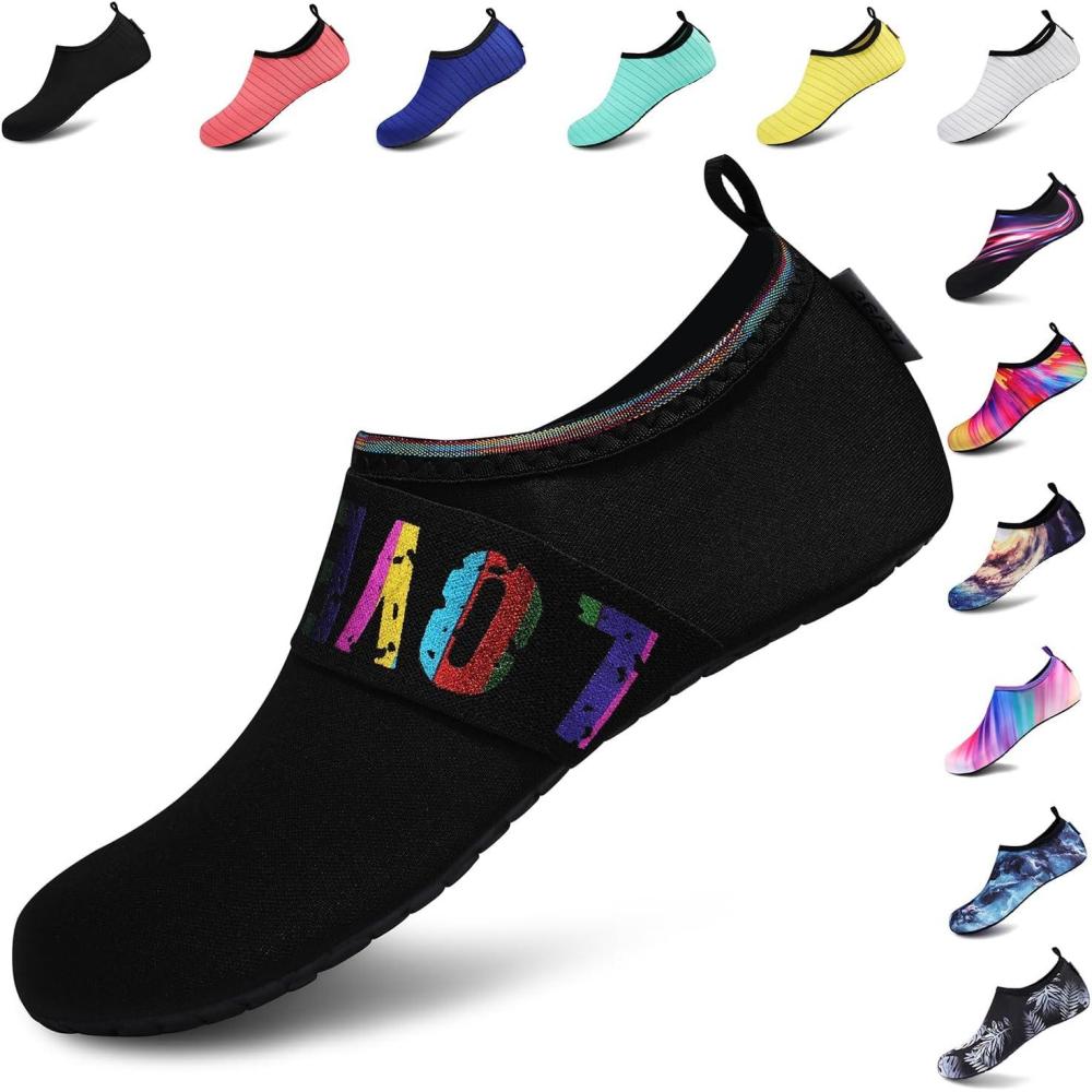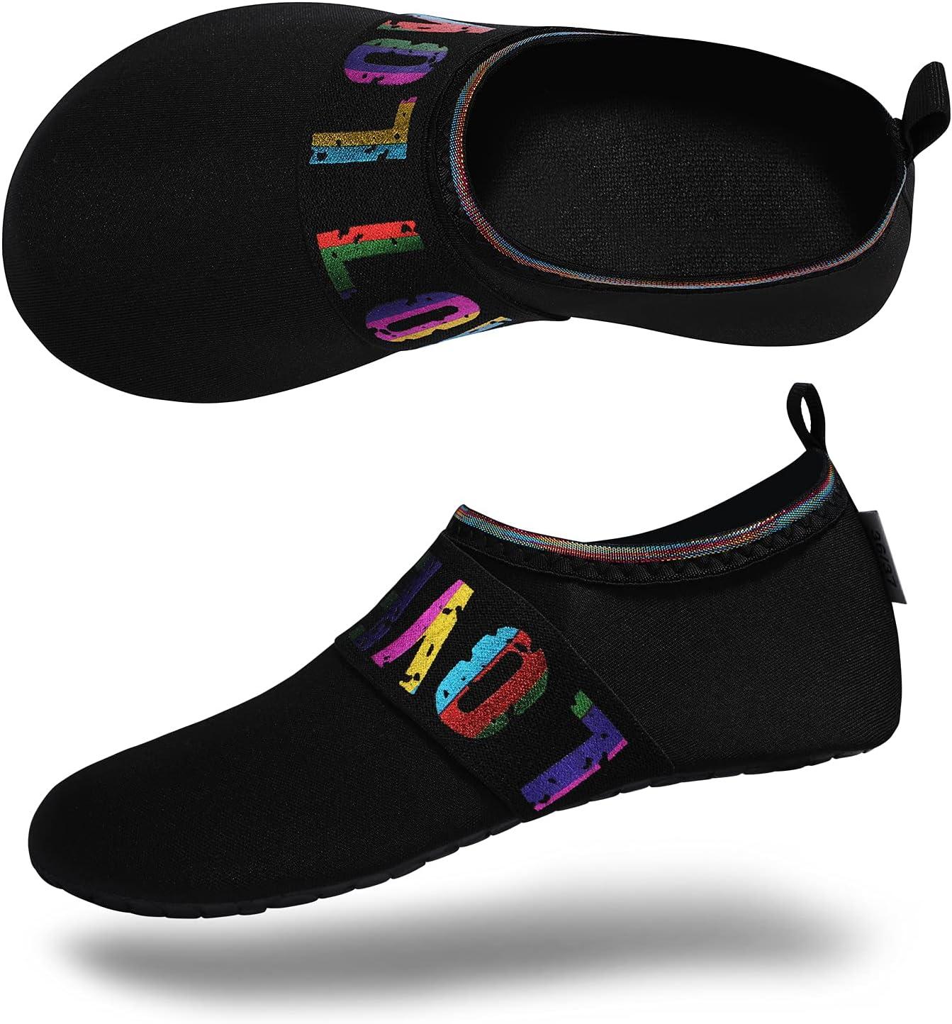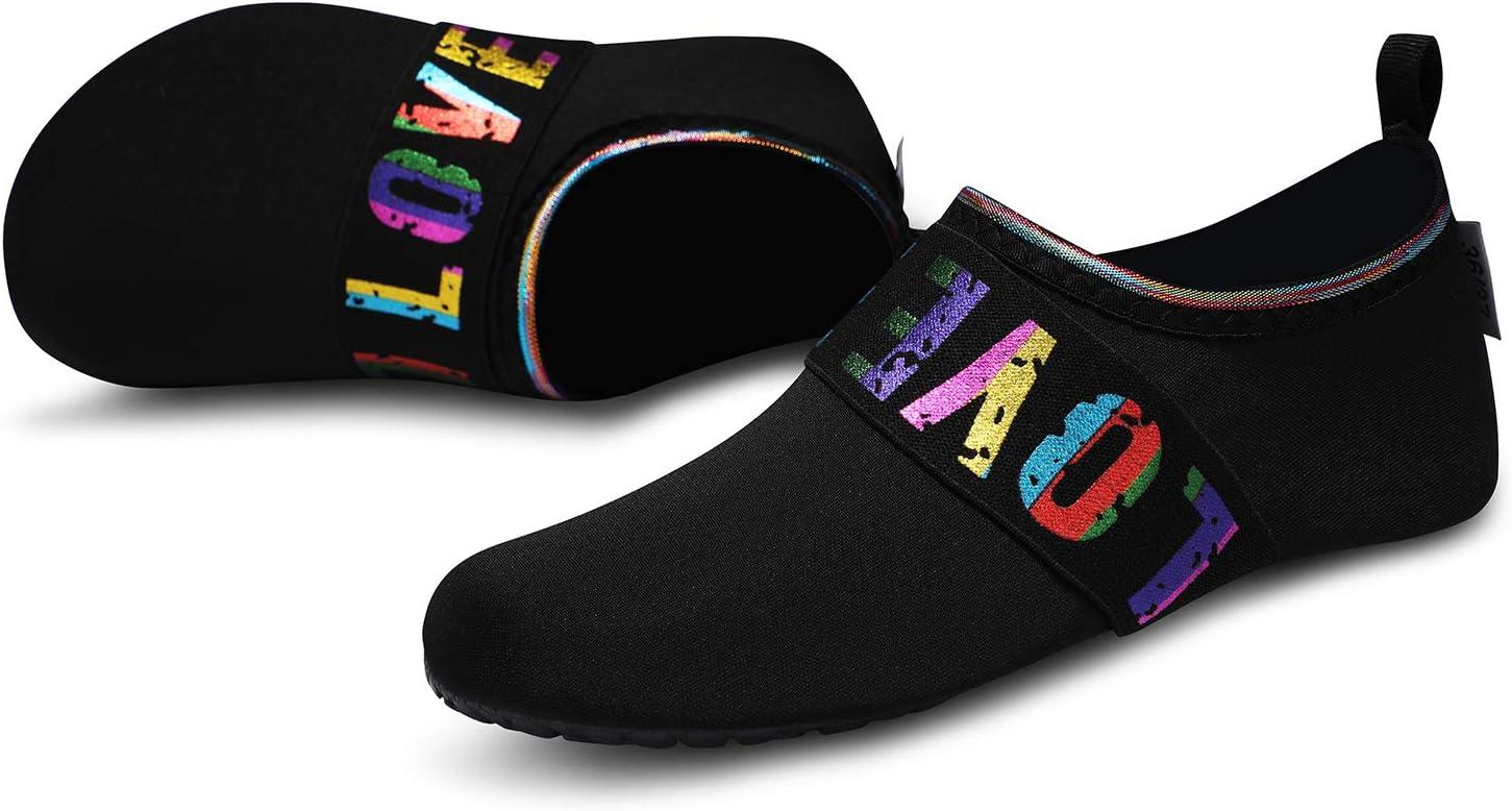 VIFUUR Water Sports Shoes Barefoot Quick-Dry Aqua Yoga Socks Slip-on for Men Women(Black/Loveblack)