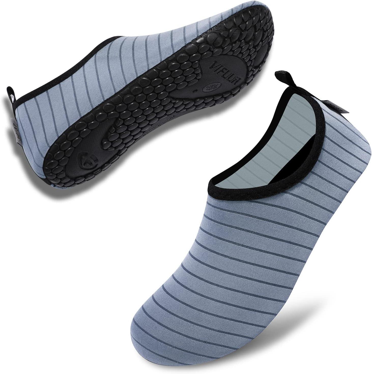 VIFUUR Water Sports Shoes Barefoot Quick-Dry Aqua Yoga Socks Slip-on for Men Women(Grey)