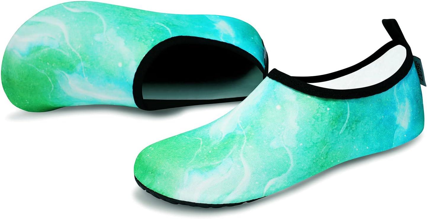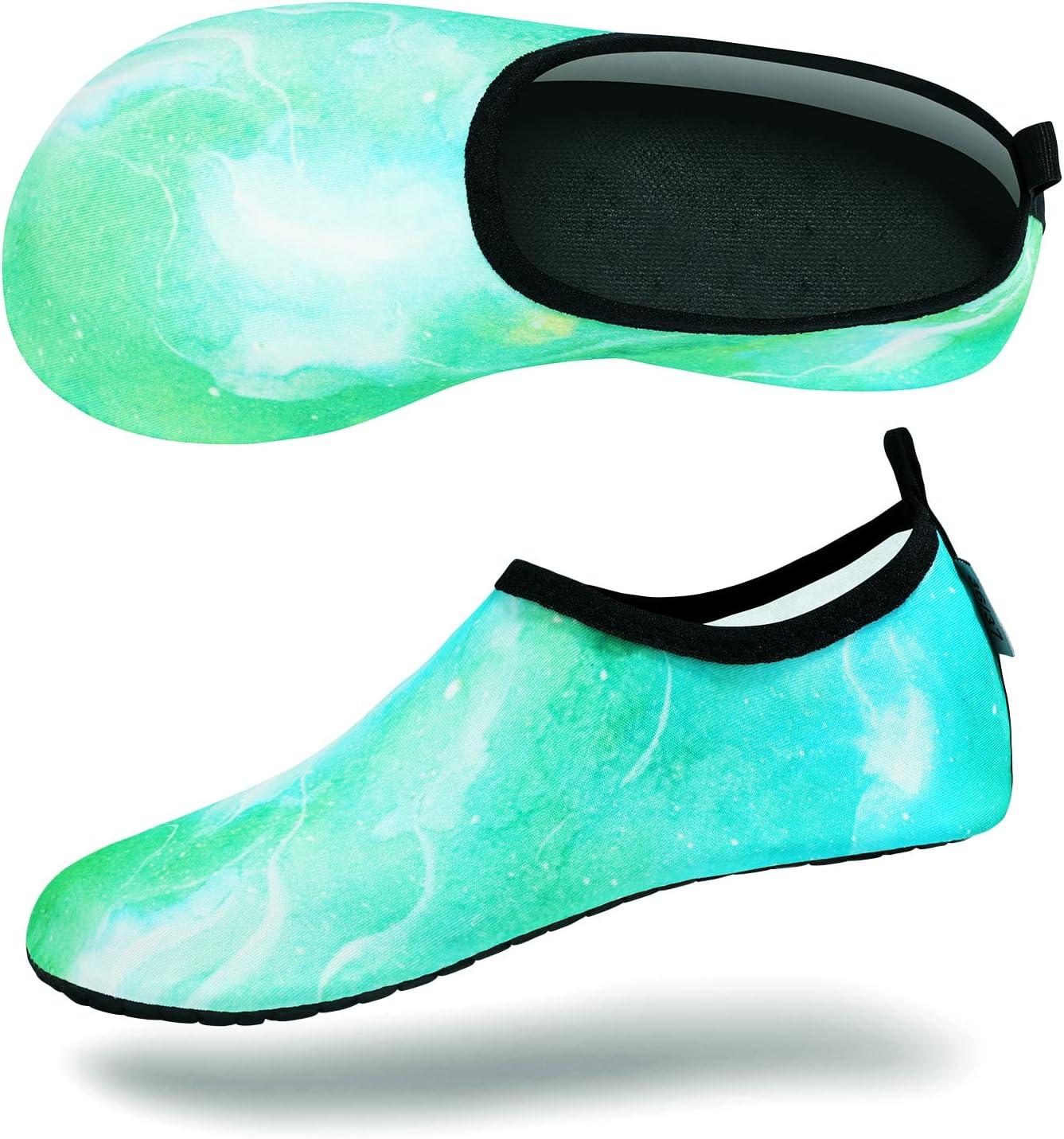 VIFUUR Water Sports Shoes Barefoot Quick-Dry Aqua Yoga Socks Slip-on for Men Women(Marble Green)
